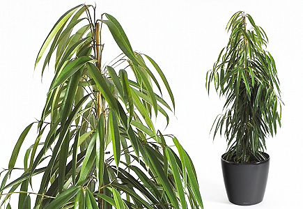 8- فیکوس آمستل Ficus maclellandi ‘Alii’ یا Ficus Amstel king که در ایران بیشتر به آمستل یا فیکوس آمریکایی مشهور است. فیکوسی با برگهای کشیده و سبز براق (یا برگهای سبز و طلایی) است که بسیار مقاوم است و در صورت داشتن نور کافی وآب کافی در خاک غنی سالهای سال عمر میکند. این فیکوس نیز مانند دیگر اعضای خانواده انجیرها دارای شیرآبه یا لاتکس است.